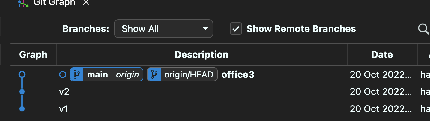 오른쪽의 origin/HEAD이 있는데 remote repo가 v2를 가리키고 있다는 뜻이다.