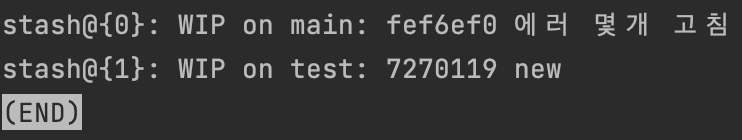 여기서 git stash list 를 해보면 이렇게 stack내 쌓인 커밋하지 않았던 변경 사항들을 확인 가능하다.